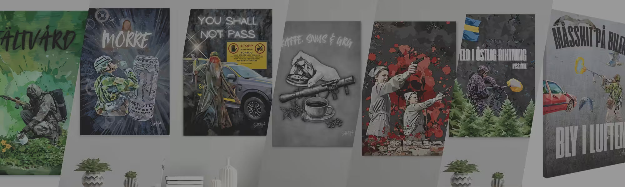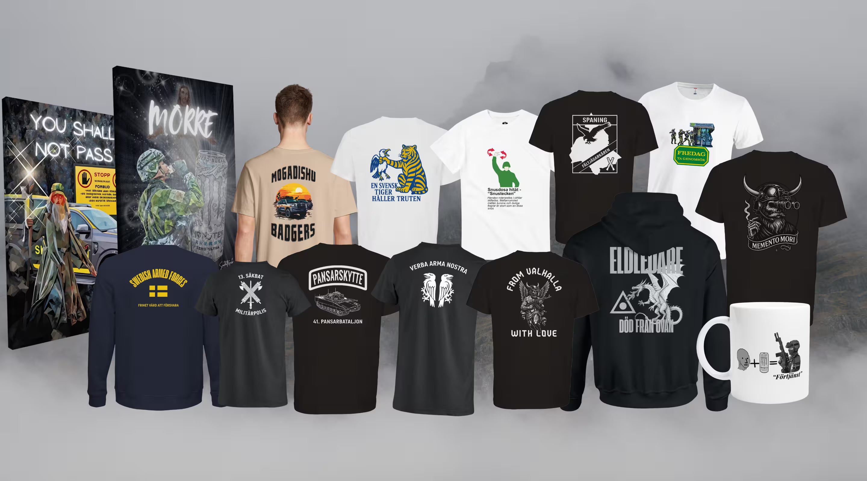 I vår webbshop hittar du allt från tryckta T-shirts, till kaffemuggar till väggkonst. Allt med den svenska militären i fokus.